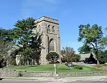 The church was eventually replaced with the current Norman-style[3] stone and granite structure in 1926, following a vote of the congregation in 1923 to construct a larger church. The architect of the new building was Harry Leslie Walker, a member of the church and the designer of the other institutions constituting the village's "Four Corners:" Bronxville High School in 1924 and the Bronxville Public Library in 1942.[4] Upon its completion, the church was consecrated in 1926. The stained glass windows were designed by the prominent artist Charles Jay Connick.[1]
