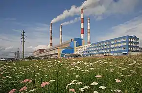 Reftinskaya GRES is the largest solid fuel thermal power plant in Russia.[1] It is situated in Sverdlovsk Oblast, 100 km north-east of Yekaterinburg and 18 km from Asbest. Reftinskiy town, which is home to 18,000 people, is situated 2.5 km from the GRES, which produces 20,000 million KWh annually. It has a total installed capacity of 3,800 and heat power 350 GKh. Coal from Ekibastuz's coal field (16,3 МJ/kilo of calorific value, ash content for moisture-free fuel is 43,3 %) is used as the main fuel and the black oil is used as the starting fuel. GRES produces power with the bar «Outdoor switchgear -500 kV» on five power lines -500 kV and with the bar «Outdoor switchgear -220 kV» on five power lines -220 kV. The station supplies power to the industrial areas in Sverdlovsk, Tyumen, Perm and Chelyabinsk regions. The construction of the electric power station was started in 1963, the launching of the first power unit took place in 1970 and the last one in 1980.