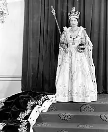 Regalia (/rəˈɡeɪl.i.ə/ rə-GAYL-ee-ə) is the set of emblems, symbols, or paraphernalia indicative of royal status, as well as rights, prerogatives and privileges enjoyed by a sovereign, regardless of title. The word originally referred to the elaborate formal dress and accessories of a sovereign, but now it also refers to any type of elaborate formal dress. The word stems from the Latin substantivation of the adjective regalis, "regal", itself from rex, "king". It is sometimes used in the singular, regale.[note 1]