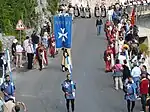 The Genoese procession proposes the consular period of the Ligurian Republic, or rather before the taking of power by the doges. The episode depicted stars the leader Guglielmo Embriaco, nicknamed "Testa di maglio", who led the fleet of Genoa during the First Crusade. At that time he brought to Genoa the Holy Catino which, according to tradition, would be used by Jesus and the Apostles during the Last Supper. Another important character present in the parade is Caffaro di Caschifellone, the annalist who reported the deeds of the Embriaco. There are also representatives of the social classes: merchants, men of arms and the people.