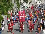 The historical parade is the central moment of the whole event. Through it every Maritime Republic fully revives its glorious past, proposing episodes and characters that marked its history. The parade has also occasionally marched abroad, in particular in Berlin and New York City.