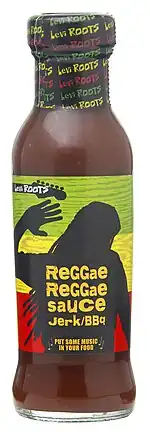 Reggae Reggae Sauce is a barbecue sauce that incorporates Jamaican jerk spice, popularised by creator Levi Roots' appearance on BBC Two's Dragons' Den, on which he used a song to sell his product.