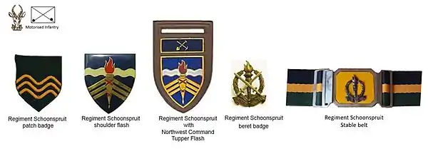 Regiment Skoonspruit was a motorised infantry regiment of the South African Army. It formed part of the South African Army Infantry Formation. As a reserve unit, it had a status roughly equivalent to that of a present-day British Army Reserve or United States Army National Guard unit.