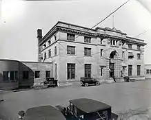 The Beaux-Arts style Union Station was constructed in 1911–12 and was actually Regina's third train station; the first is now a museum in Broadview, Saskatchewan. The station was completed the same year the deadly Regina Cyclone struck the city, tearing through Wascana Park and gutting part of the downtown area. The building underwent a major expansion in 1931, and the original façade was redone in a simpler Art Deco style with Tyndall stone. As well, terrazzo floors, marble support columns and plaster moulded ceilings were added to the interior.[1]