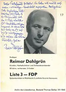 Reimar Dahlgrün (7 April 1914 – 16 April 1982) was a German pianist, professor at the Hochschule für Musik, Theater und Medien Hannover and journalist.[1]