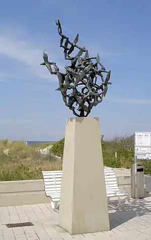 - 1971 "Möwenflug", Bronzeplastik in Warnemünde vor dem Hotel Neptun