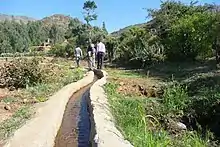 In numerous villages of Tigray, REST has established hand pumps, to provide the community with clean water. Each pump serves a few hundred people, and is managed by the community, who will appoint a guard, and a "water committee" that collects user fees and verifies cleanness.[16] As a consequence, communities become more resilient to shocks and social interaction improves.[17] The plight of women and girls, who traditionally care for water provisioning, is reduced. They spent less time, because less walking to distant springs, so that it is easier to attend school or do productive work.[18] Just in 2012, REST has constructed 876 new hand dug wells, and provided clean water to 298,557 people in Tigray.[1]