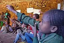 REST played a crucial role to undercut the Addis Ababa government's attempts to use famine as a means to obtain control over Tigray.[7] However, at the onset of the 1984–1985 famine REST suffered from logistical constraints. The organization had only 35 trucks, out of which many were in bad shape. Unable to cope with the humanitarian disaster, REST and TPLF decided to encourage Tigrayans to seek food at distribution centres operated by the Addis Ababa government.[9] The policy of encouraging movements to government feeding centres was reversed, as abuses were committed in those places. Now, people were asked to migrate towards western Tigray and onwards to Sudan.[10] Along the road REST organized distribution points for food, water and some degree of shelter.[10] The organization also provided rudimentary medical services were available.[10] Often REST would lead entire village groups into Sudan, were refugee camps were set up by the organization.[11]