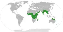 3. Remusatia vivipara (Roxb.) Schott - central + western Africa from Tanzania and Ethiopia to Sierra Leone; Oman, Yemen, Taiwan, Tibet, Yunnan, Indian Subcontinent, Indochina, Java, Bali, Christmas Island, Queensland, Northern Territory of Australia