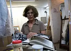 Radell received critical notices in New York and Parisian art circles in the 1960s through a series of New York gallery exhibitions. Art critics described her as a colorist and figurative painter, and noted her often satirical approach to social commentary subject matter.[1][15][16][17] Her visual statements about society, and politics[18] evoked reference to Jack Levine and Ben Shahn.[3][4] Radell also chooses family and children, nudes, landscapes and still-life as subject matter.[1][4]