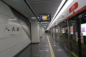 Renmin Road (Chinese: 人民路) is a metro station on Line 2 of the Hangzhou Metro in China.[1] It is located in the Xiaoshan District of Hangzhou. This station has three exits.