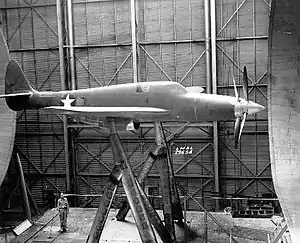 The United States Army Air Corps began the R40-C fighter competition in February 1940. The competition encouraged manufacturers to propose unorthodox high-speed fighter aircraft that met the requirements of Type Specification XC-622.[1] The specification called for a single-engined high-performance fighter aircraft, with a maximum speed between 425 and 525 mph (684 and 845 km/h), armed with both machine guns and cannons, and be capable of landing on a 3,000 ft (910 m) long grass runway.[2]