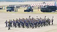 It is the main band that marches at official ceremonies and receptions for the high-ranking officials who recognize the Republic of China government that visit Taipei, which includes heads of state, heads of government, and diplomatic delegations. One of the band's main appearances is at the Double Ten Parade in October as part of the combined ROCAF massed bands.[3] The army band, like other Taiwanese military bands are inspired by American and German military band traditions, with a notable aspect being the use of a whistle for commands, a tradition only found in United States military bands. The military band starks in contrast to the People's Liberation Army Band, which was also influenced in German and most of the Soviet/Russian traditions.