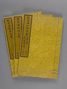 Researches on Manchu Origins, also known as Manzhou Yuanliu Kao, is an important history book published by the Qing dynasty government in 1777. The Qianlong Emperor sponsored its compilation with the goal of legitimizing Qing rule, as well as identifying the Qing as a successor to the Jin dynasty (1115–1234).[1] The Manzhou Yuanliu Kao also bolstered Qianlong's conception of the Manchu people as a wu, or martial race.[2]