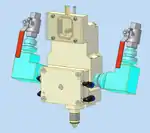 Light-emitting diodes are produced in fully automated lines. Part of it is the dispensing in transparent plastics. Here short working cycles are of great significance to lower the price of the little lights. This an example for the use of multiple metering heads.