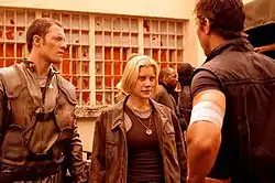 "Resistance" received favorable critical review. In a positive review, Segrest especially praised actor James Callis (Baltar).[10] Tankersley gave "Resistance" a B, praising Callis and the scenes between the Tighs, but criticizing the scenes on Caprica as alternately confusingly frantic and boring.[8] Davis praised the performances of actors Michael Hogan (Saul Tigh) and Kate Vernon (Ellen Tigh), and the episode's treatment of "the dangers and moral uncertainty underlying any breaking of the chain of command".[9] Davis compared Battlestar Galactica favorably to Babylon 5 in this regard.[9] Brew also reviewed the episode favorably, expressing appreciation for the focus on conflicts among humans rather than between human and Cylon.[12]