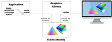 - the graphics library, instead of the client, retains the scene (complete object model of the rendering primitives) to be rendered and