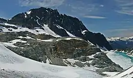 Rethel Mountain is a 2,408-metre (7,900-foot) mountain summit located in the Garibaldi Ranges of the Coast Mountains, in northwestern Garibaldi Provincial Park of southwestern British Columbia, Canada. It is situated 11 km (7 mi) northeast of Whistler, on the south side of Wedgemount Lake and west side of Wedgemount Glacier. Its nearest higher peak is Parkhurst Mountain, 1.3 km (1 mi) to the southeast.[2] Rethel is set 3.2 km (2 mi) northwest of Wedge Mountain, the highest peak in Garibaldi Park, and 2.9 km (2 mi) southwest of Mount Weart, the second-highest in the park.  Precipitation runoff from the peak drains into Wedgemount Creek and Rethel Creek, both tributaries of the Green River, which in turn is a tributary of the Lillooet River. It was named in association from Rethel station (since closed) on the Pacific Great Eastern Railway route.[3] The mountain's name was officially adopted on February 27, 1978, by the Geographical Names Board of Canada.[4]