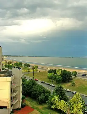 Revere Beach is a public beach in Revere, Massachusetts, measuring over three miles (4.8 km) long and located about five miles (8 km) north of downtown Boston. In 1875, a rail link was constructed to the beach, leading to its increasing popularity as a summer recreation area, and in 1896, it became the first public beach in the United States.[3][4][5] It is still easily accessible from Boston by the MBTA subway's Blue Line, and can accommodate as many as one million visitors in a weekend during its annual sand sculpture competition.[6] The Revere Beach Reservation and Revere Beach Reservation Historic District is listed on the National Register of Historic Places.