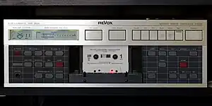 Studer AG, a privately owned Swiss manufacturer of professional audio equipment, began development of high fidelity cassette recorders in late 1970s. Willi Studer was reluctant to diversify into the highly competitive cassette deck market; for most of the decade, the company's experience in cassette technology was limited to reliable but low-fidelity classroom equipment.[1][2] However, the decline of reel-to-reel recorder sales, the commercial success of Nakamichi and "designer models" by Bang & Olufsen, coupled with pressure from within the company, persuaded Studer to invest in the cassette format.[2] Marino Ludwig, designer of the Revox B77 reel-to-reel recorder,[3] examined the best cassette decks on the market and advised Studer on a course of action.[2] Studer agreed with the proposal and appointed Ludwig chief of the cassette project, on the condition that the reputation of Studer and Revox brands would not be compromised in any way.[2]