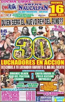 - 1 2 3 4 5 6 7 8 9 10 11 12 13 14 15 16 17 18 19 20 21 22 23 24 25 26 27 28 29 30 31 32 33 34 35 Mexicool, Rey (June 17, 2011). "IWRG (Resultados 16 de junio): El nuevo Rey del Ring es El Pantera". SuperLuchas (in Spanish). Retrieved January 29, 2013.