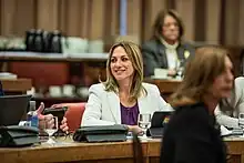 Reyes Romero is a native of Marchena. She worked in the fashion and advertising industries before getting involved in politics.[1] Reyes Romero has described herself as politically active since she was a teenager but was not involved in any political parties before Vox and was an original founding member of Vox alongside Santiago Abascal. She is currently the vice-president of Vox in the Seville region. She is married to fellow Vox politician Macario Valpuesta.[2]