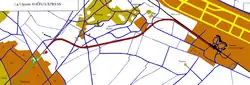 Rhônexpress uses the line T3 infrastructure built by SYTRAL from Lyon to Meyzieu (a hub for commuters with a large surface parking lot available). From there, new tracks were built specifically for Rhônexpress all the way to Lyon-Saint Exupéry Airport. The route has a total length of 22 km (14 mi), 7 km (4.3 mi) of which has been recently built, running largely between the Meyzieu ZI and the Lyon-Saint Exupery stations.