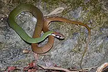 Rhabdophis nigrocinctus, also known as the black-striped keelback, green keelback, or banded keelback, is a keelback snake in the family Colubridae found in Myanmar, Thailand, Laos, Cambodia, Vietnam, and Yunnan (SW China).[1][2]