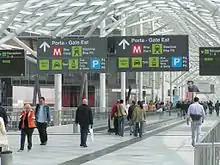 Rho Fiera is a station on Line 1 of the Milan Metro in Rho, Lombardy, Italy. It was opened on 14 September 2005 as a one-station extension from Molino Dorino; Pero station was only added on 19 December 2005.[2] The station provides service to the FieraMilano exhibitition centre and is the current western terminus of the line. It is the westernmost station on the network. The station is outside the urban area of Milan. There is a special ticket, single or return, available for people travelling from Milan in order to visit the exhibitition centre by way of Rho Fiera station.[3]