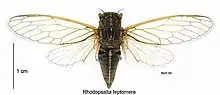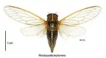 Rhodopsalta leptomera, also known as the sand dune redtail cicada, is a species of insect that is endemic to New Zealand.[1][2] This species was first described in 1921 by J. G. Myers and named Melampsalta leptomera.[3][4]