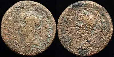 | Bronze coin struck in Thrace 38-41 AD. Coin became rusty probably due to depositing in acid soil.