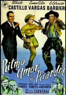 Rhythm, Love and Mischief (Ritmo, amor y picardía) is an 1955 Argentine musical (tango) comedy film directed by Enrique Carreras and written by Manuel Barberá. It stars Alberto Castillo, Amelita Vargas, Alfredo Barbieri and Francisco Álvarez and was released on 2 March 1958.[1]