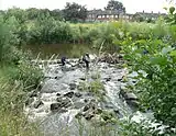 The River Ribble and the Savick Brook Ribble Link are subject to outfall from a number of sources, including the Springfields nuclear fuel production facility at Salwick, to the north of Savick Bridge. A research project by the University of Portsmouth was carried out to test low cost tools for measuring water quality, with one of the pilot studies carried out on the Ribble. This was known to have failed to meet Environmental Quality Standards, due to the presence of heavy metals, organic compounds and organo-metallic compounds. The Environment Agency take samples from the estuary once a month to monitor the water quality, but the research project took samples from many more monitoring points including on the Ribble Link.[66] Research carried out in 2006 looked at the effects of radioactive discharges from the Springfields site on those working, living or finding recreation in the locality. The site produced fuel for Magnox reactors, pressurised water reactors and advanced gas-cooled reactors at the time of the survey, although the production of Maxnox fuel ceased in 2007. Radionuclides are discharged to the air and in liquids into the environment, with levels of radionuclides dropping significantly since Maxnox fuel production stopped. At the time the site was owned by the Nuclear Decommissioning Authority, and operated by Springfield Fuels Ltd Westinghouse.[67] The Ribble Link between the sea lock and lock 8 was studied as part of the aquatic survey.[68] Sediments dredged from this section during construction were used to landscape the north-west bank of the brook, and these were tested for beta emissions.[69] The report recommended that testing for beta and gamma dose rates could be introduced on the section of the Ribble Link below the sea lock, where beta dose rates were found to be relatively high.[70]