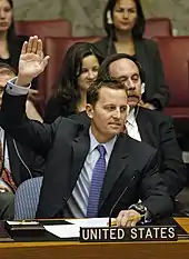 In 2001, Grenell was appointed by President George W. Bush as Director of Communications and Public Diplomacy for the United States Permanent Representative to the United Nations in New York (formally, his title was Minister Counselor).[11] Serving in that role until 2008, Grenell advised four different U.S. Ambassadors. During his tenure, Grenell promulgated U.S. official position and strategy on such issues as the War on Terror, global peacekeeping operations, nuclear proliferation, and the UN Oil for Food corruption scandal.[12]