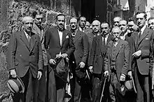 First confirmed information on Oreja's return to Carlist engagements is from 1935; early that year he took part in a mass in Madrid, which was about dedication of Secretariado de los Diputados Tradicionalistas to the Sacred Heart of Jesus.[85] Few months later he was noted as far as on Balearic Islands on a Carlist propaganda tour, speaking along such party activists like Luis Arellano, José Lamamie de Clairac and Tomas Quint Zaforteza,[86] and in October numerous traditionalists accompanied him during a mass on a first anniversary of Marcelino's death.[87] In early 1936 Oreja was already regularly engaged in Comunión Tradicionalista events.[88] During general elections of February he appeared as a CT candidate within a joint monarchist alliance of Candidatura Contrarrevolucionaria in Gipuzkoa.[89] The list did well, with slightly less votes than the leading PNV one; with 44,769 votes Oreja was the third most-voted candidate in the province.[90] Due to electoral stalemate between PNV, CCR and Frente Popular[91] no list was declared victorious and the second round was needed. However, for reasons which are not clear[92] the monarchists withdrew from the race.[93]