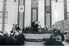 Oreja speaking during political rally at Unión Cerrajera, Mondragon