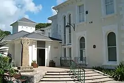 The primary evidence for a king of this name is the medieval Penzance Market Cross which now stands in the grounds of Penlee House in Penzance, Cornwall, England, UK.[3] R. A. Stewart Macalister in his Corpus Inscriptionum Insularum Celticarum published in 1949 stated that an inscription in a panel on the side of the cross read REGIS RICATI CRUX, translating to "Cross of King Ricatus".[1][4]