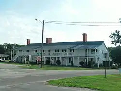 Now known as Rice's Hotel / Hughlett's Tavern, this "courthouse tavern" was built in stages between the late 1700s and the mid-19th century.[3] Throughout the years, this historic Northern Neck landmark has served as in inn, a tavern, a hotel, apartments, and business offices. The structure is located at Heathsville, Northumberland County, Virginia. It is a two-story, frame building with a 12-bay front and two-tier wooden piazza and Federal style interior.