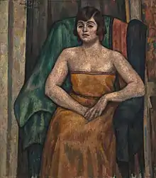 Aldington suffered a breakdown in 1925.[24] His interest in poetry waned, and he developed an animosity towards Eliot's celebrity.[25] Aldington grew closer to Eliot[26] but gradually became a supporter of Vivienne Eliot in the troubled marriage. Aldington satirised her husband as "Jeremy Cibber" in Stepping Heavenward (1931).[27] He had a relationship with writer Valentine Dobrée and a lengthy and passionate affair with Arabella Yorke, a lover since Mecklenburgh Square days, coming to an end when he went abroad.[2][11][28]