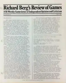 Richard Berg's Review of Games was a slim professionally produced fanzine with over 20 issues published per year, dedicated to publishing game reviews.[1] In 1980, Richard Berg, then working as a game designer for (SPI), started writing and editing reviews of wargames, which SPI published as Richard Berg's Review of Games. It began as a two-page standalone newsletter, published twice a month for 25 issues.[2] SPI then converted it into a regular feature in the pages of SPI's Strategy & Tactics until late 1985.[3]