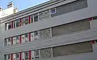 After becoming an independent architect in 1958, Gach actively contributed to the construction of Viennese housing and schools.[2] The Gach-designed Gangschule with 24 classes and two high schools comes from the "haze circle" of Hubatsch's school concepts.[6] This concept is typified by the residential complex Edergasse 1-3 in Vienna 21 and the two high schools Hernalser Gymnasium Geblergasse and Amerling-Gymnasium. In 1970, the former Esterhazypalais (Palais Kaunitz) was demolished for the construction of the Amerling Gymnasium. Built in 1970-1972, the new building with 24 classrooms and two sports halls corresponds to the common typology used in the construction of secondary schools in the late sixties, without any architectural respect for the environment.[7]