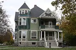 The Richard Guenther House in Oshkosh, Wisconsin, United States, is a large, fine Queen Anne house designed by Waters and built by Jacob Rheiner in 1888 for Richard W. Guenther. Guenther was a Prussian immigrant who owned a drug store in Oshkosh, became Wisconsin state treasurer, US Congressman, and consul to Mexico City, Frankfurt, and Cape Town. From 1906 to 1913 the large house hosted Dr. M. E. Corbett's new Lakeside Sanitorium and Training School for Nurses, the first hospital in Oshkosh, which later evolved into Mercy Medical Center.[2][3]