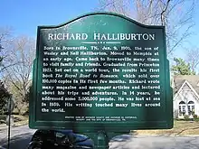 Historical marker for Richard Halliburton in Brownsville, Tennessee