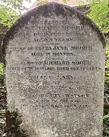 Moore died on 7 December 1878[1] and was buried on the western side of Highgate Cemetery.