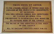Friar Thomas Bourchier, who took the Franciscan habit at Greenwich about 1557, wrote a work chronicling the lives of the Observant friars who were executed under the Tudors,[2] In it he wrote that Risby and Rich had been offered their freedom twice, if they would accept the king's supremacy.[1] Risby was executed by hanging along with the others, including Barton, at Tyburn, London, on 20 April 1534.[1]