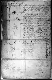 In the summer of 1694 the young Waldron and his parents narrowly escaped the massacre of his great aunt Cutt and household at the Pulpitt Farm.[6][7]