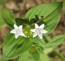 Richardia (Mexican-clover) is a genus of about fifteen species of flowering plants in the family Rubiaceae. They are native to tropical to warm, temperate regions of the Americas, with one species also native to Fiji. They are mostly annual plants, though a few species are herbaceous perennial plants.