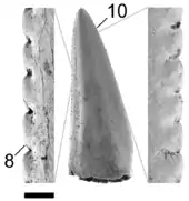 | Tooth of cf. R. gilmorei with close up of denticles | |