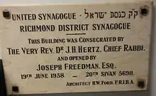 - ↑ "Richmond Synagogue". JCR-UK. 1 March 2015. Retrieved 30 March 2019.