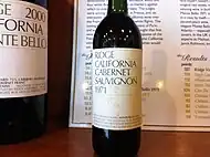 Ridge Vineyards is a California winery specializing in Cabernet Sauvignon, Zinfandel, and Chardonnay wines. Ridge produces wine at two winery locations in northern California. The original winery facilities are located at an elevation of 2,300 feet (700 metres) on Monte Bello Ridge in unincorporated Santa Clara County in the Santa Cruz Mountains AVA, south of Los Altos, California and west of Cupertino, California. The other Ridge winery facilities are at Lytton Springs in the Dry Creek Valley AVA of Sonoma County.[1] Ridge Vineyard's 1971 Monte Bello Cabernet Sauvignon gained prominence for its fifth-place finish in the 1976 "Judgment of Paris" wine tasting.